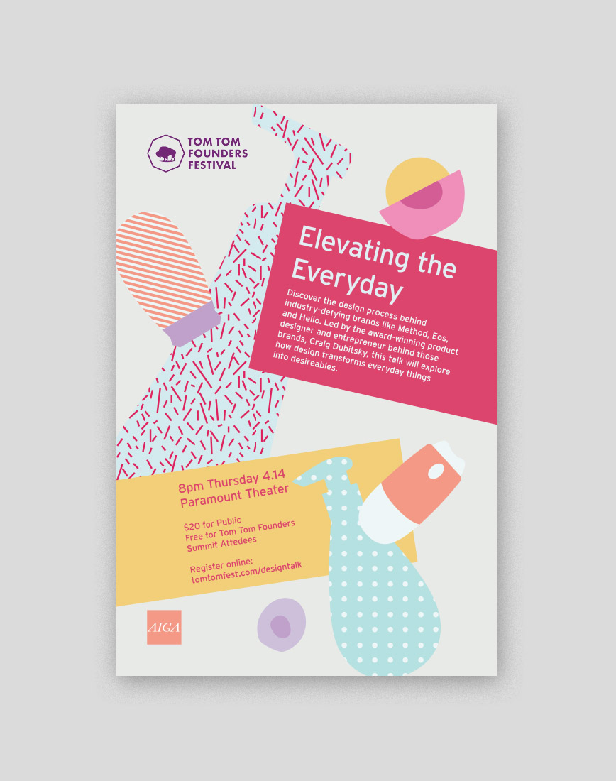 For our third event, a guest lecture by Craig Dubitsky of eos and Hello Products, we created a poster and web graphic to be distributed around town, online, and over email.