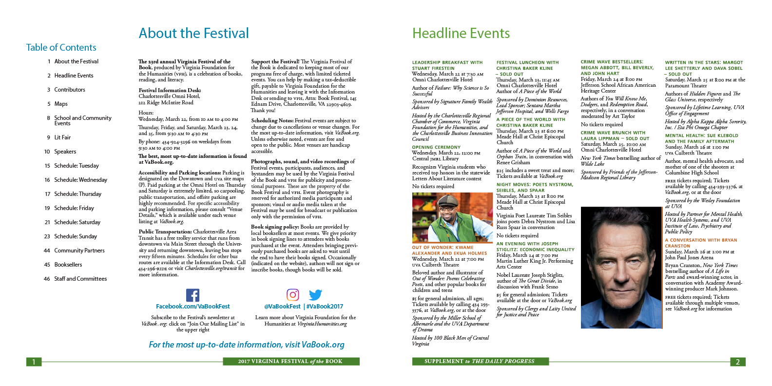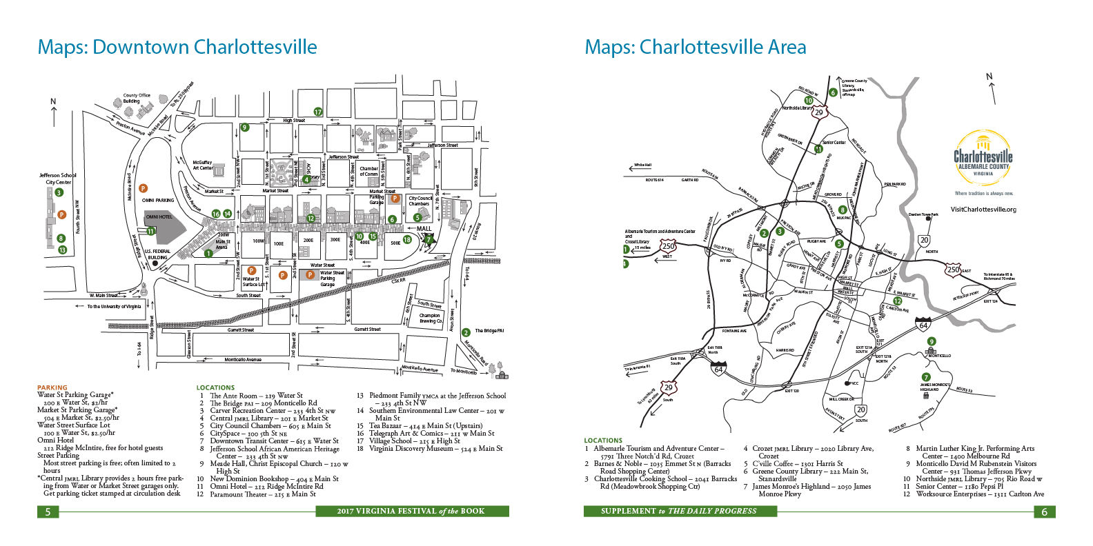 The Virginia Foundation for the Humanities, after seeing the branding work for the Charlottesville Design Week, approached if it has words about designing their program for the 2017 Virginia Festival of the Book. Originally, they recommended that we use the files from last year as a template, but small changes began to mount until we had completely redesigned the document—and the reviews couldn't have been better