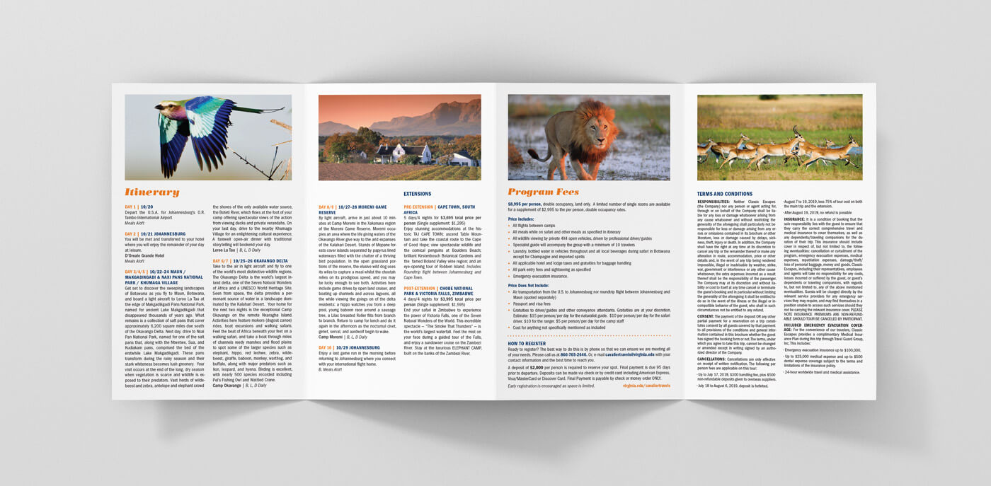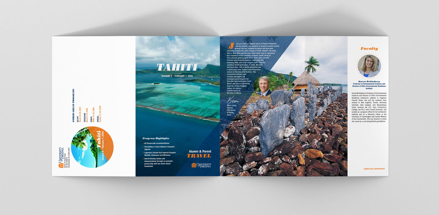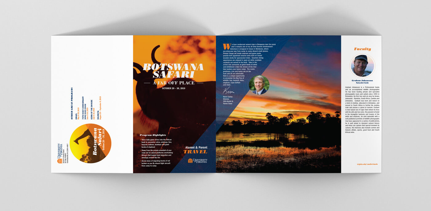 UVA Advancement Communications, the university’s fundraising department, plans impressive journeys to distant cultures and lands. For each of these trips, they need branded informational brochures, with itineraries, payment details, a letter from the director, photographs, and more.