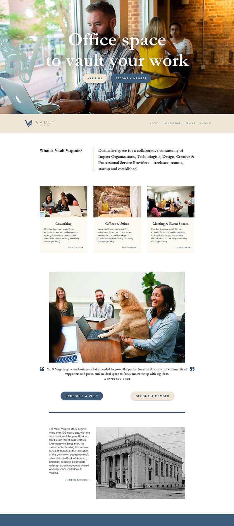 Having opened relatively recently, Vault Virginia’s number-one priority is to get the word out. To help do this, they asked me to produce a website, business cards, a few ads, and a floorplan to be posted inside and used in collateral.